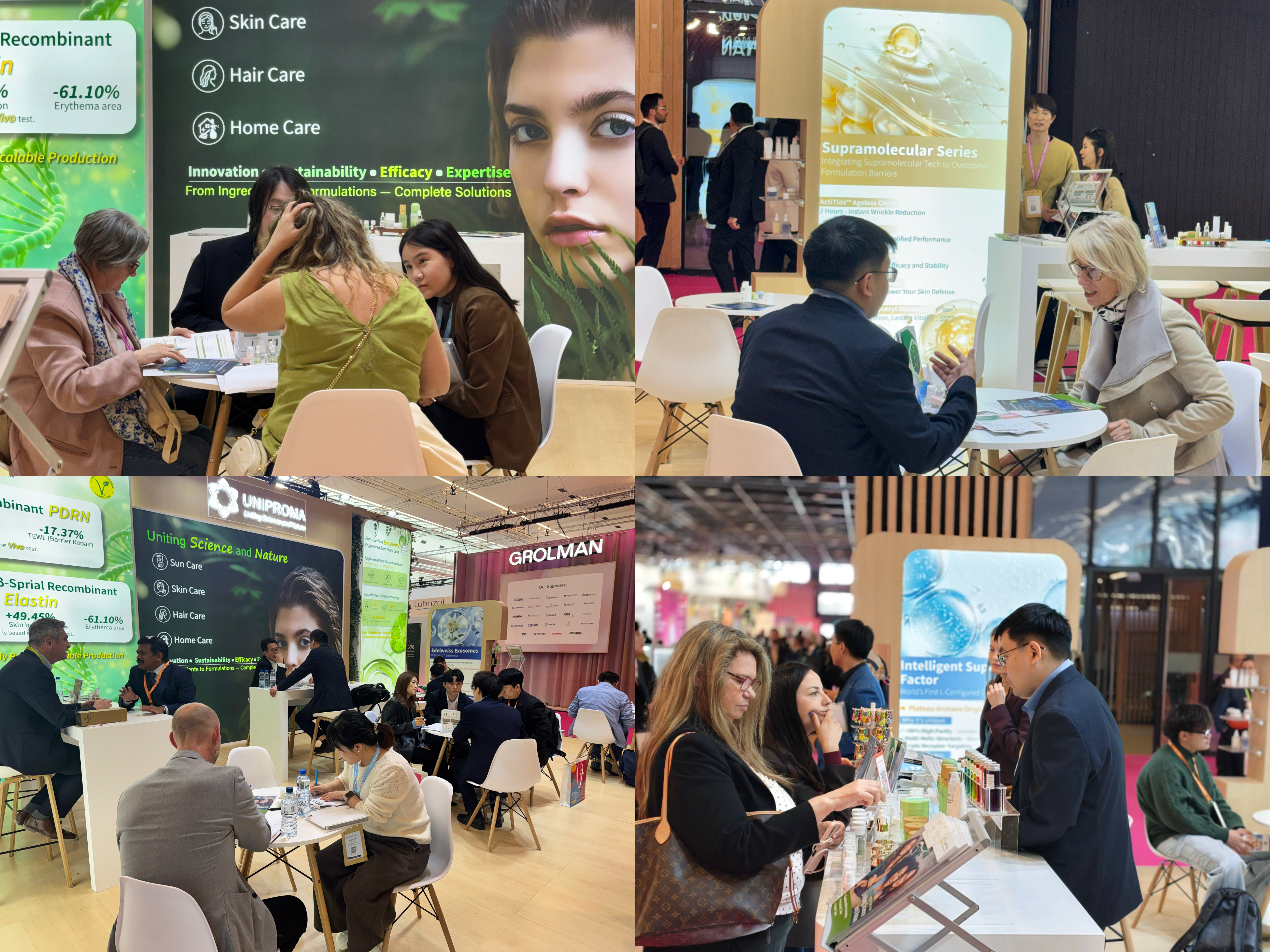 Throughout the exhibition, Uniproma showcased a portfolio of cutting-edge, biotech-driven ingredients, including Recombinant PDRN, Recombinant Elastin, Plant-Derived Actives & Exosomes, Fermented Plant Oil, and Supramolecular Series. These innovations attracted strong interest for their advanced technology, sustainability credentials, and proven efficacy in modern skincare formulations.